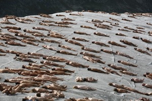 Muistatteko vielä Spencer Tunickin, joka päätyi kuvaamaan alastomia ihmismassoja. Hän kävi muistaakseni myös Suomessa ikuistamassa nakuja. Viime lauantaina yli 600 ihmistä poseerasi alasti Aletschin jäätiköllä, Sveitsin läheisyydessä. Kuvat olivat symbolinen ele, joka kuvastaa luonnon haavoittuvaisuutta ilmastonmuutoksen alla. Projekti toteutettiin yhteistyössä Greenpeacen kanssa.