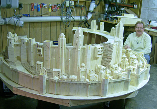 Patrick Acton on löytänyt oman paikkansa taiteen alalla. Hän on jo pitemmän aikaa rakennellut tulitikuista isoja esineitä. Saatuaan täysimittäisen F1-auton valmiiksi hän siirtyi rakentamaan Taru sormusten herrasta -kirjasta tutusta Minas Tirith -kaupunkia pienoiskoossa. Hienolta näyttää. Lähteessä on paljon lisää kuvia. Projektin on määrä valmistua 2009.