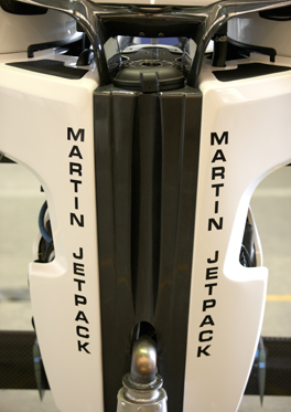 Maasta irtautumisesta vastaa Martin Aircraftin 2.0 litran nelisylinterinen kaksitahtimoottori, joka luo 150 kw eli n. 200 hv. Näillä tehoilla ja 19 litran tankilla lentoreppu pystyy noin puolentunnin yhtämittaiseen lentoon ja käytännössä tämä tarkoittaa sitä, että ohjastaja pääsee pisimmillään tuossa ajassa 50 kilometrin päähän lähtöpisteestä. Lapinvaellukselle tällä laitteella siis ei kannata lähteä, ellei ole ennakkoon käynyt levittelemässä oletetulle reitille jerrykannuja odottamaan.