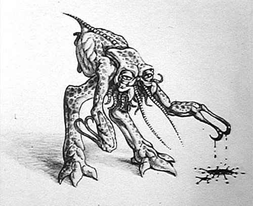Lähteemme esittelee Alien ja Aliens -elokuviin liittyvää kuvamateriaalia. Tässä pieni ote. Ylinnä on screenwriter Dan O’Bannonin esitys siitä, miltä 8. matkustaja olisi voinut näyttää. Tämähän ei ohjaaja Ridley Scottille kelvannut, ja kehiin astui H.R. Giger. Kuvasta päätellen tämä ei ollut ollenkaan huono veto.