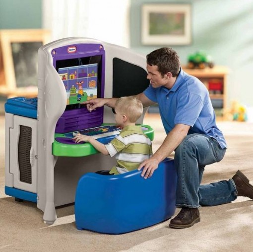 Tässä on tavallaan masentava lelu, toimistonurkkaus. Lelu on suunnattu 3-7-vuotiaille ja myyjän sivujen markkinointipuhe on sinällään varsin toimiva, kuitenkin. Lyhyesti referoituna: ”Tässä teknologian ajassa on ensisijaisen tärkeää että lapset oppivat tietokoneista niin varhain kuin mahdollista. Tässä oppii ajattelutaitoa sekä ongelmanratkaisua. Hankkimalla tällaisen ohjelmistolelun lapselle vanhemmat osoittavat tuntevansa informaatioteknologian tärkeän roolin lapsen oppimisympäristössä.”