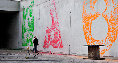 Facadeprinter tekee automaattisesti seinämaalauksia värikuula-ase-kuulilla