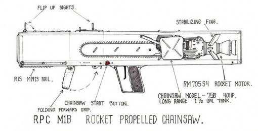 Rocket Propelled Chainsaw eli lyhyesti RPC on erityisesti zombien tappamista varten suunniteltu työkalu. Kyseessä on raketinheitin-ase, jossa raketin päässä on moottorisaha. Joku voisi myös sanoa, että moottorisahan päässä on raketti. Kummin päin tahansa, hyvin suunnattuna tällä lienee olevan ainakin jonkinlainen suojeleva vaikutus zombien valtaamassa maassa. Jollaista nyt onneksi emme tuskin tule koskaan kohtaamaan, paitsi tarinoissa.