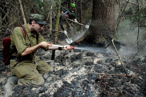 Metsäpaloja sammuttamassa