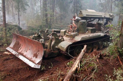Perinteitä kunnioittaen on venäläinen raivauskalusto perin miehekästä. Armeijan telavetoiset kulkuneuvot helpottavat huomattavasti tiettömillä teillä kulkemista ja auttavat muuta kalustoa pääsemään perille. Viisaat insinöörit tiedostivat jo kauan sitte telaketjuilla kulkevan kaluston ylivertaisuuden vaikeassa maastossa ja neuvostoaikaan kehiteltiinkin melkoisen järeää palontorjuntakalustoa kuten esim. alla olevassa kuvassa esiintyvä  T-55:n alustalle rakennettu palontorjunta tankki GPM-54M.