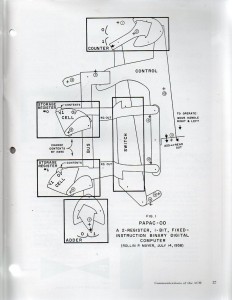 Tässä muistin virkistykseksi askarteluprojekti suoraan 50-luvulta! Kyseessä on paperisen, yksibittisen tietokoneen askarteluohjeet, jotka on alun perin julkaistu ”Communications of the Association for Computing Machinery” -julkaisun toisen vuosikerran yhdeksännessä numerossa vuonna 1959.