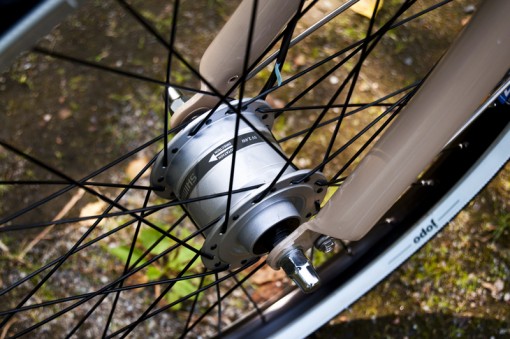 Edessä oleva V-jarru on hyvin tehokas, joten pysähtyminen on hallittua. Ikävä kyllä eturatas on kuitenkin sen verran pieni, että yli 30 kilometrin tuntivauhdilla polkeminen on suurimmalla vaihteellakin liian tiheätempoista. Tämän vuoksi pitkien maantiematkojen ajaminen tuntuu ikävystyttävältä. Napadynamo on tehokas ja antaa paljon virtaa lampulle ilman suurta lisävastusta, hienoa teknologiaa.