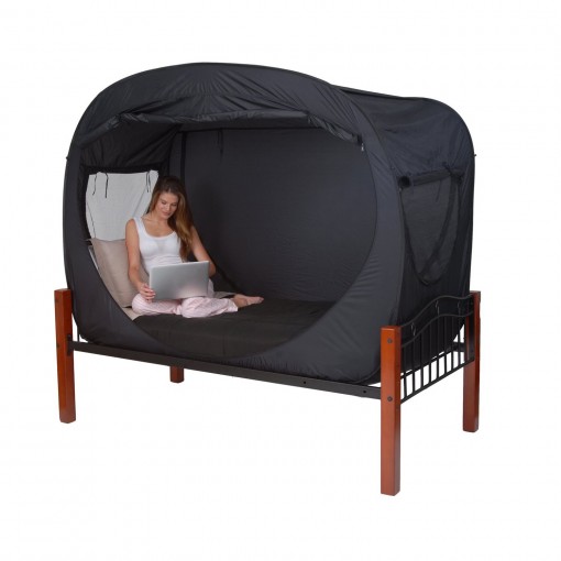 Jokainen reilireissullaan yhteismajoituksen saloihin tutustunut tietää, että suuren eurooppalaisen kaupungin keskustassa sijaitsevan nuorisohostellin jaetussa nukkumatilassa yksityisyyttä on tarjolla vain rajoitetusti. Privacy Pop on eräänlainen sisäkäyttöön suunniteltu, sänkyyn sopivaksi mitoitettu teltta, joka ratkaisee jaetun nukkumatilan rajoitetun yksityisyyden haasteen melko nokkelasti. Pyöreäksi kiekoksi kuljetusta varten pakkautuva Privacy pop -teltta on hinnoiteltu 199,95 dollarin, eli noin 150 euron hintaiseksi. Ihan muutaman yön hostellimajoitusta varten yksityisyystelttaa ei siis kannata hankkia, vaan sijoittaa rahat ennemmin omaan huoneeseen.