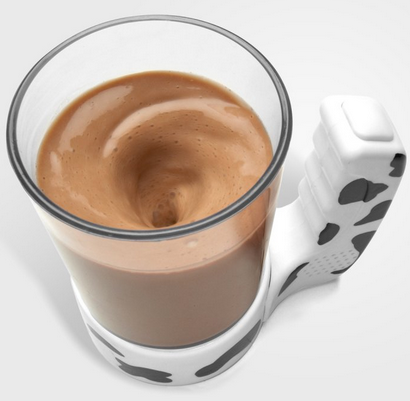Tietty lusikan kaivamisessa astiakaapista on hieman vaivaa, mutta sekoittimen sisältämä kaakaomuki on silti hämmentävä keksintö