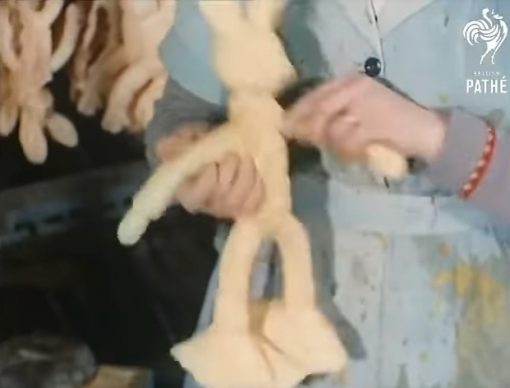 Oheisella videolla voi seurata lyhyttä katsausta Ashfordissa Middlesexissä sijaitsevasta nukketehtaasta. Video on vuodelta 1957. Nukeilla on sisällä rautalankaranka. Sen päälle valetaan muotissa lateksi-saippuakeho. Saippua tuo materiaaliin kuplat.