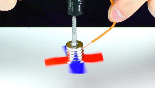 Siinä oli hyvin havainnollistettu harjallisen sähkömoottorin toimintaperiaate. Ruuvin kantaan kiinnitettiin magneetti ja ruuvin kärki pariston ”-”-napaan. Ruuvin siinä roikkuessa laitettiin sähköjohto pariston ”+”-navasta magneettiin. Ruuvista kiinni keikkuva magneetti lähti pyörimään.