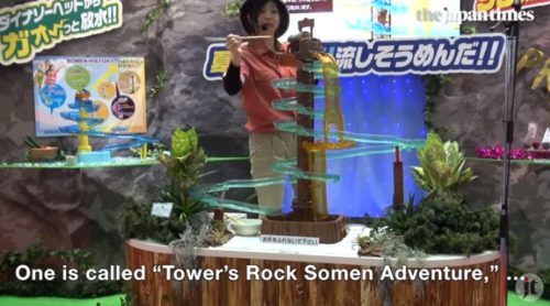 Tämä erikoisuus esiteltiin keväällä Tokion lahjatavaramessuilla. Hieman vesipuiston liukumäen pienoismallia muistuttavassa radassa lasketaan ihmisten tms. sijaan nuudeleita.