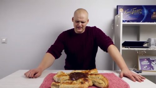 Suomalainen ansiota ja tunnettavuutta saavuttanut kilpasyöjä J. Pynnönen testaa kykyään sulattaa 3,6kg – 12300kcal joulutorttu omenamarmeladilla.