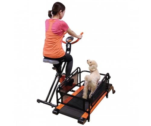 Silloin tietenkin auttaa hankkia koiralle juoksumatto. Jotta kuitenkin ihminenkin saa liikuntaa, juoksumattoon on yhdistetty kuntopyörä. Ihminen polkee vauhtia juoksumattoon ja koira juoksee.