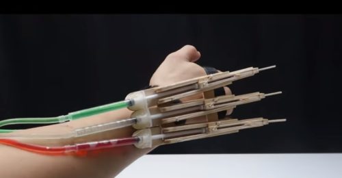 Kahdet lääkeruiskut yhdistyvät letkuilla, joissa on nestettä. Kun kämmenpuolen ruiskuja painetaan, kämmenselän puolen ruiskut työntyvät ulos, ja niiden myötä puiset kynnet.