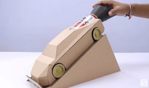 Tässä tehdään suihkumoottoriauto, joka suihkun aiheuttaa tulitikkojen syttyminen. Auto on siististi pakkauspahvista leikattu ja sen peräosassa on oluttölkki, joka on täytetty n. 1,5cm mittaisista tulitikun päistä.