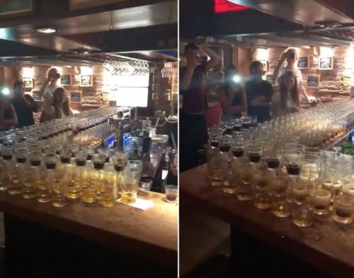 Tuolla hostellin baarissa toteutettiin tämä yli 100 jägerbombin ketjureaktio. Juomassa sekoitetaan jägermaister 4cl energiajuomaan 12cl.
