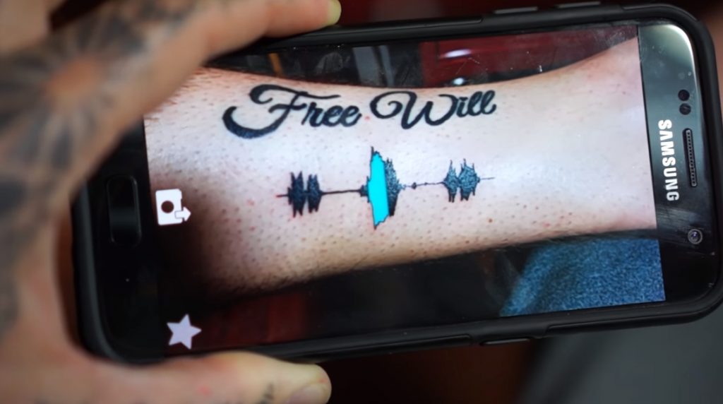 Soundwave Tattoo – spektogrammitatuointi, joka toistetaan puhelimen sovelluksella.
