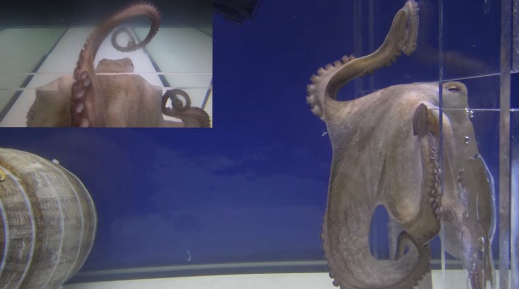Mikäli testi on liian hidasta katsottavaa, niin voinemme todeta, että 76cm maksimipituudeltaan oleva mustekala mahtuu vaiheen 4 välistä, mutta ei enää vaiheen 5. Tai ainakaan se ei itse usko mahtuvansa 1,7cm välistä. Siis melko elastinen otus.