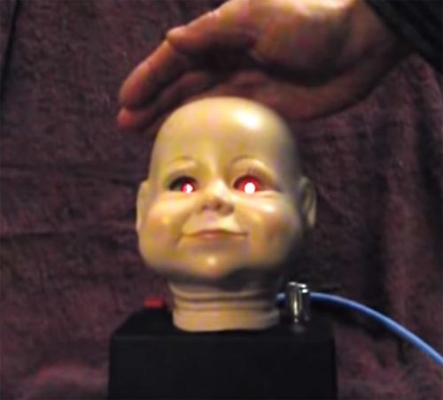 Tässä rakennelmassa thereminin antenni on nuken pään sisällä ja täten ”nukke” ”soittaa” ääntä sen mukaan miten kaukana tai lähellä käsi sitä on.