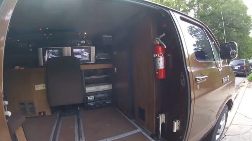 Ensin autosta huomaa hieman madalletun katon sekä katossa olevat rakenteet. Ovissa on erilliset lukot sisäpuolella. Kun takaosaan astuu, aukeaa näkymä vakoilukameroiden monitoreihin sekä valvontakonsoliin. Takaosassa on vessa ja sivupenkin alla kolmen akun virtakytkimet. Mielenkiintoinen paketti. Lisänä ostaja löysi jokusen FBI:n vakoilunauhan ja cd-/dvd-levyjä vuodelta 2013.