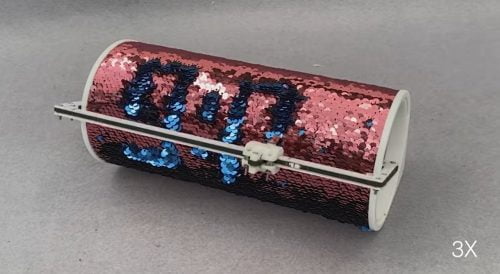 Sequino on kehitetty piirtämään paljetteja kääntämällä kellonaika. Paljetit ovat sylinterinmuotoisen putkilon päällä.