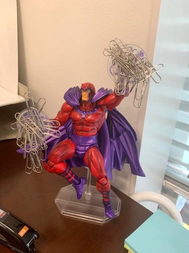 Nyt on oivallisesti keksitty tuoda tämä mutanttikyky toimistoesineeseen. Tämä klemmarinpidike nimittäin muistuttaa Magnetoa ja sen kädet ovat magneettisia. Eli ikäänkuin Magneto-klemmarinpidike käsillään liikuttaa metallisia klemmareita käsiään kohti.