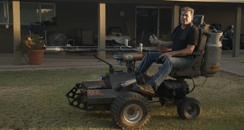 Mies rakentaa erikoisvarusteltuja pyörätuoleja – Tässä mallissa on liekinheitin