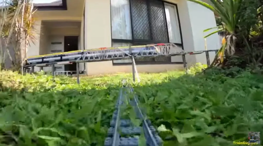On hauskannäköistä kun leikkijuna kulkee monimutkaista rataa. Nykyteknologia mahdollistaa helposti kameran sijoittamisen junan keulaan.