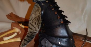 Kissan nahkainen taisteluhaarniska, sopiva asuste GoT-kisulle, tehdään räätälöitynä