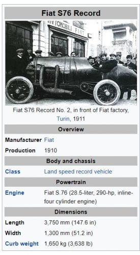 Torinon peto eli Fiat S76 – vuosimalli 1910, 290 hevosvoimaa ja 213km/h – Peto on peto