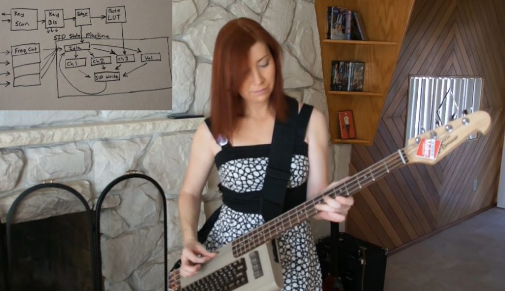 Jeri Ellsworth on rakentanut varsin näyttävän bassokitaran vanhan rikkinäisen C64-tietokoneen ympärille ja sisään. Basson kielien alla tallassa on kontaktimikrofonit, joiden signaali prosessoidaan C64-äänipiirissä. Tämän lisäksi instrumenttia voi soittaa painellen tietokoneen näppäimiä. Ääniä voi vaihtaa funktionäppäimistä.