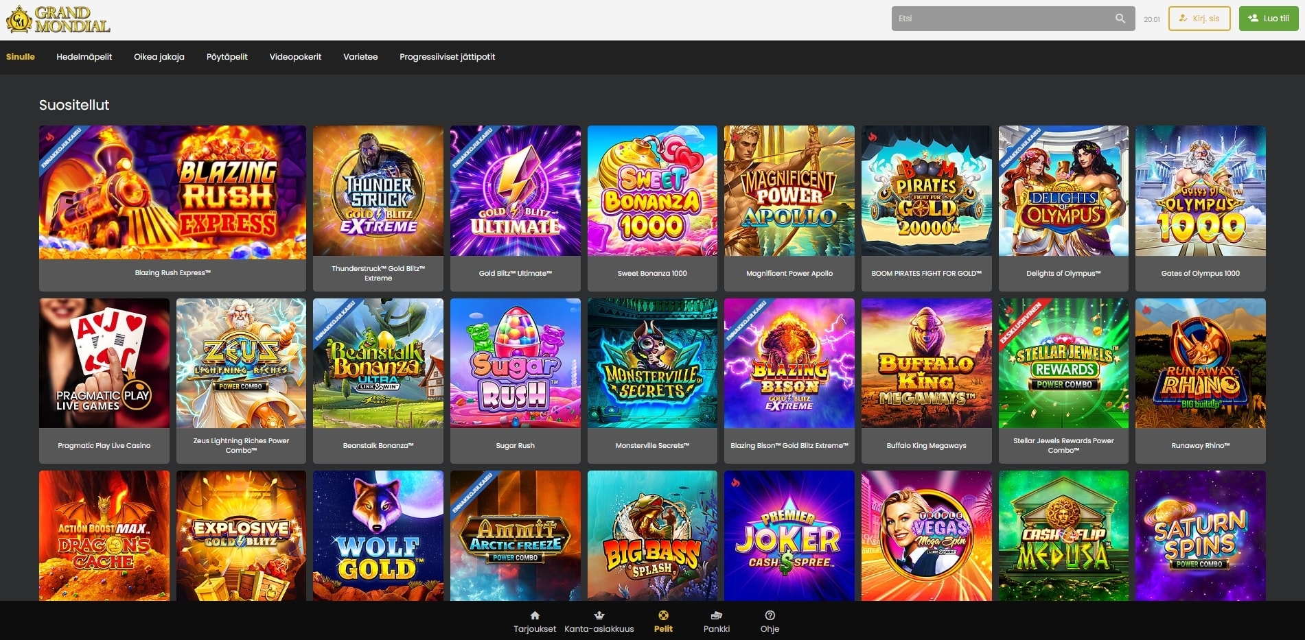 Grand Mondial Casino on vuonna 2005 perustettu perinteiseen ulkoasuun luottava kasino, joka tarjoaa uusille pelaajille houkuttelevan tervetuliaisbonuksen 150 ilmaiskierroksen ja 100 % talletusbonuksen muodossa. Bonusten lisäksi pelaajat voivat hyötyä laajasta VIP-ohjelmasta, joka tuo mukanaan viikoittaisia etuja, henkilökohtaisen tilinhoitajan ja eksklusiivisia kampanjoita. Pelivalikoima painottuu Microgamingin ja Pragmatic Playn kolikkopeleihin, pöytäpeleihin sekä kolmeen eri live-kasinosivuun, mutta kokonaismäärä jää kilpailijoita pienemmäksi. Kasino tarjoaa monipuoliset maksutavat, mukaan lukien kortit, nettilompakot ja kryptovaluutat, sekä toimii hyvin myös mobiilissa selain- ja sovellusversion kautta. Turvallisuudesta vastaa Kahnawake-lisenssi ja vastuullisen pelaamisen työkalut löytyvät asiakaspalvelun kautta, mutta suomalaispelaajien on huomioitava, ettei kasino ole verovapaa.