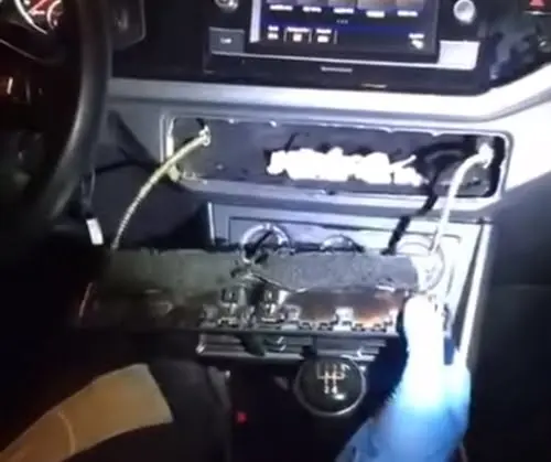 Turkin poliisi esittelee näppärää huumepiiloa auton tuulettimien takana