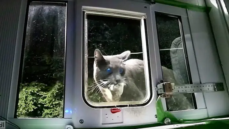 Kissanluukku, joka ei päästä kissaa sisään kuolleen saaliin kanssa – Tekoälyn avulla
