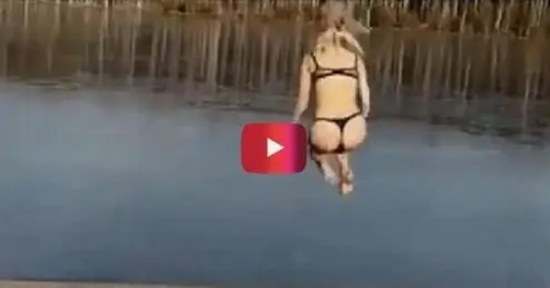 Venäjällä tapahtuu: Nainen yrittää hypätä jään läpi pommilla järveen, jää on liian vahvaa, hups!